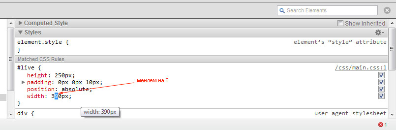 Что-то я не вижу, что ты для блока #live width:380px сделал...